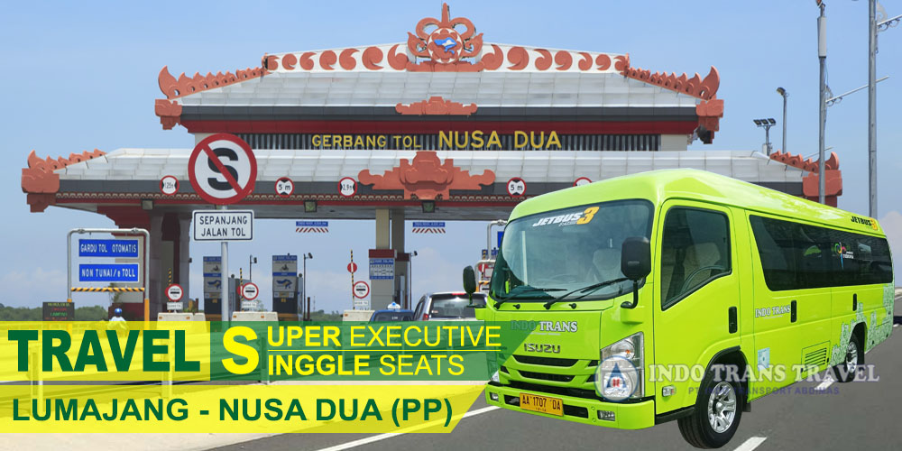 INDO TRANS TRAVEL adalah penyedia jasa layanan Travel Super Executive dengan rute Lumajang – Nusa Dua (Bali) (pp) setiap harinya. Tentunya lebih memudahkan Anda untuk tidak repot-repot lagi pergi ataupun naik turun di terminal, karena dengan travel executive otomatis akan langsung diantar ke alamat tujuan (Door to door service). dan juga tidak perlu angkat-angkat barang bawaan (terutama jika barang bawaan Anda banyak).